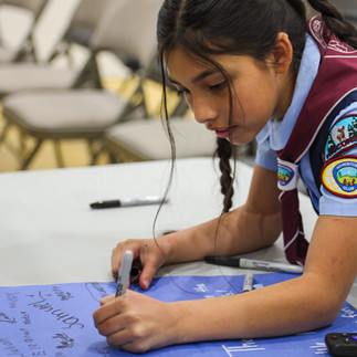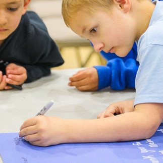 Materials like thread and cloth were donated from the Oxford Seventh-day Adventist Church. Special thanks to Judy Minier, who even cut squares of cloth for us ahead of time. The Adventurers filled out a thank-you card because this donation helped make this event even more possible.